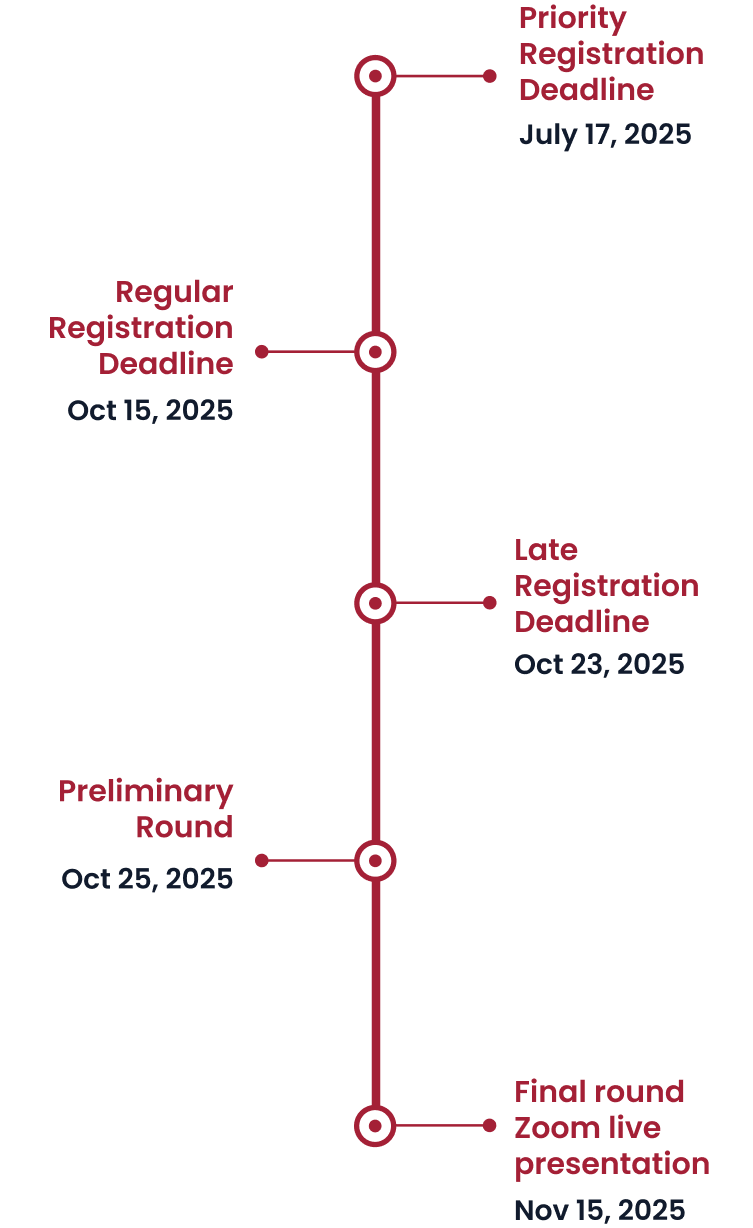 Description: The top 8 performing teams from the preliminary round in each of the Middle School and High School Categories will be invited to compete in the global final round